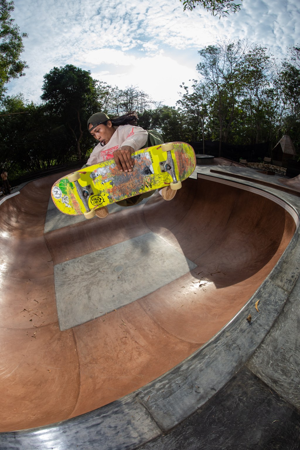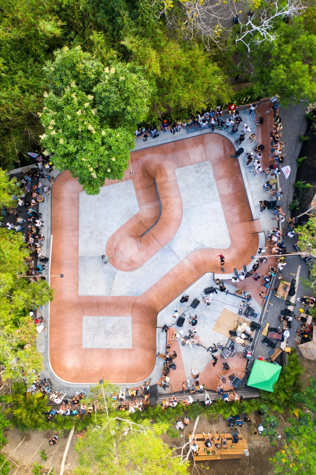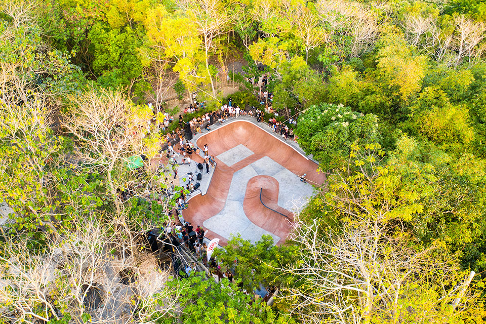 Our skatepark is designed to provide an exceptional skating experience for individuals of all levels. The park features a beautiful two-tone concrete bowl, complete with both shallow and vert-deepened sections, as well as a spine, hips, roll-overs, and extensions.